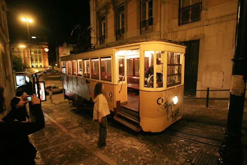 One of the two iconic yellow carriages of the funicular, which has traversed the steep incline between Restauradores Square and the Bairro Alto district since 1885, reportedly derailed and careened uncontrollably down the cobbled street.